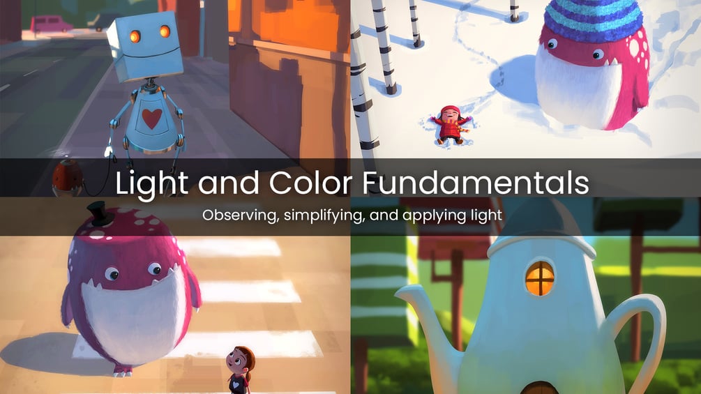 Each tutorial explores decision-making around light direction, color relationships, value structure, and how these elements work together to support mood, readability, and form. The set covers both controlled studies and narrative-driven scenes, offering multiple angles on the same core principles.
